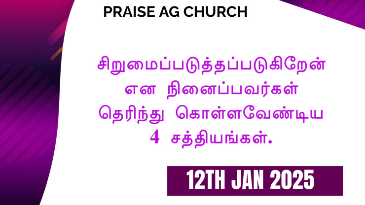 Sirumaipaduthapadugiren Ena Nenaipavargal therinthu kolla vendiya 4 Sathiyangal| சிறுமைப்படுத்தப்படுகிறேன் என நினைப்பவர்கள் தெரிந்து கொள்ளவேண்டிய 4 சத்தியங்கள்| 12 Jan 2025 | Rev. B. Samuel | Praise AG Church | Kolathur